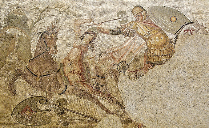 Самая древняя римская каменная мозаика датируется II веком до н.э. Её первые образцы ограничивались геометрическими орнаментами. Со временем стали популярны мозаики с изображением растений, животных, портретов. Римляне украшали мозаикой не только пол и стены, но и мебель, утварь, вставляли узоры в деревянные рамы.
